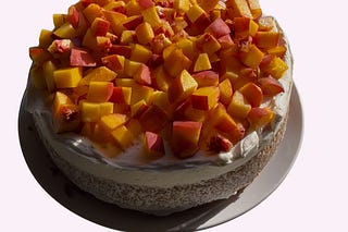 with pink peppercorn whipped cream and peaches